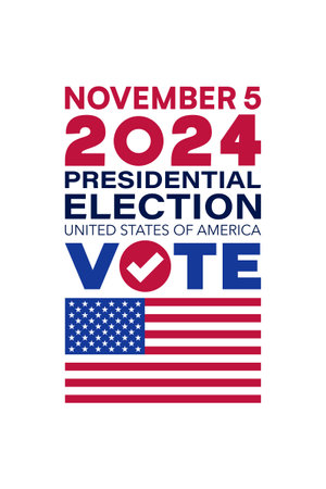 Presidential Election 2024 in United States. Vote day, November 5. US Election. Patriotic american element. Poster, card, banner and background. Vector illustration