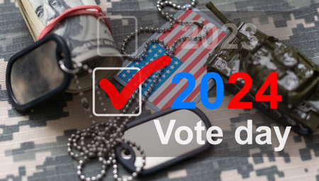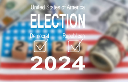 2024 Vote, Presidential Race and Election, Money and Text.