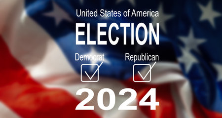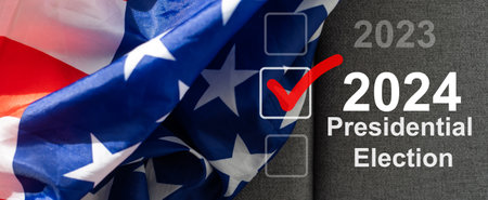 USA 2024 Presidential Election background or banner design with American flag. use to Election event banner, card, poster, background. USA Vote or Election 2024. Political election