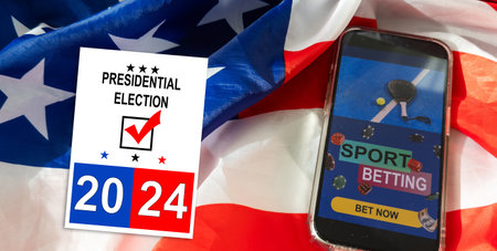 smartphone with sports betting, presidential elections and sports betting, flag of the USA