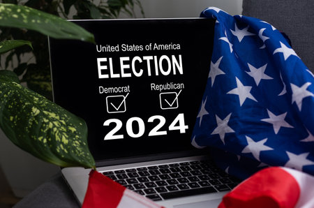 Presidential Election 2024 Written over Waving American Flag