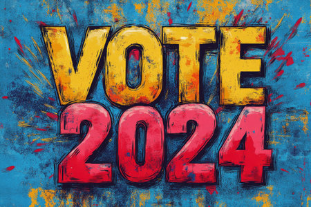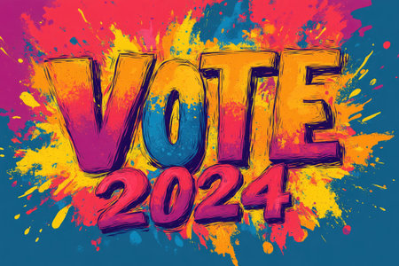Vote 2024 sign with a colorful explosion design promoting voter participation in the upcoming election