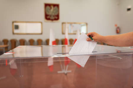 Ballot box. The voter casts his vote. Election of the President of Poland. Special vote.