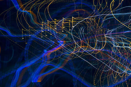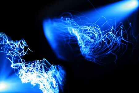 Flowing Sparks, photo with a slow shutter speed, blue tinted abstract background