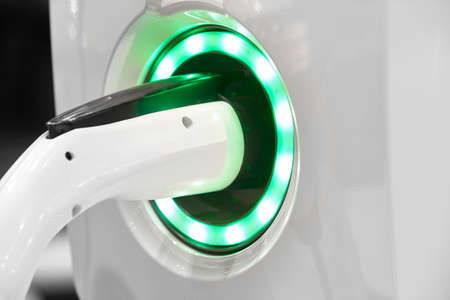 Electric car charging detail. Green and renewable energy technology. Horizontal