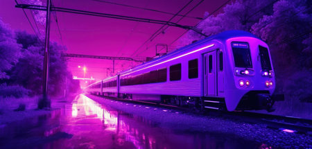 Generative AI : Sustainable public transport moving on green grass tracks urban infrastructure