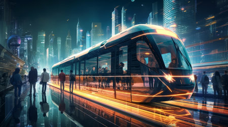 photograph captures the futuristic transportation, showcasing sleek and innovative vehicles that represent the cutting-edge technologies of tomorrow.a future of transportation is transformed.