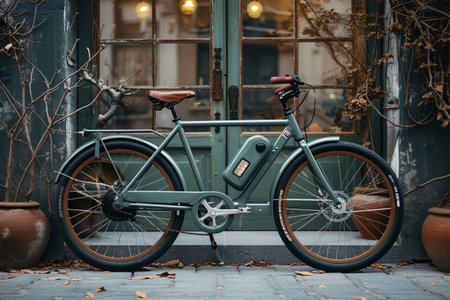 electric bicycle parked in front of the bookstore, sustainability concept