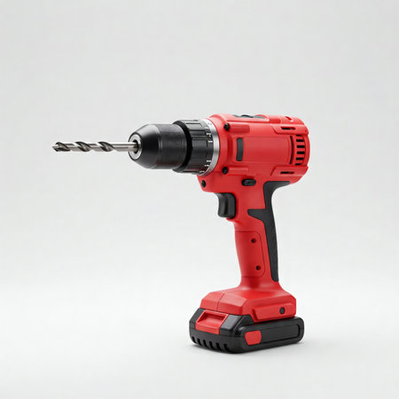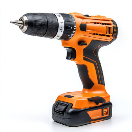 cordless power drill with orange and black design for repair projects isolated on white background