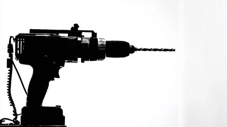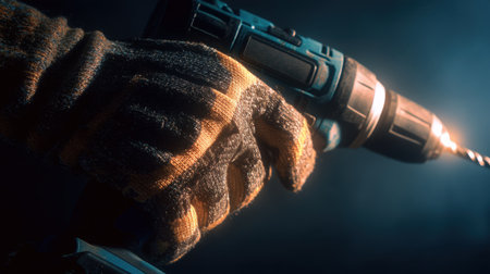 An AI generated illustration of an electric drill in a dark setting against a pitch-black background