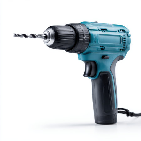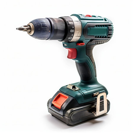 Cordless power drill on white background