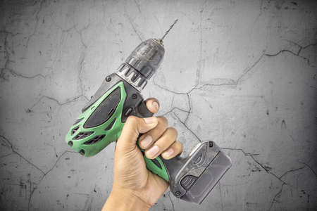 Hand hold a cordless drill for worker device tool.