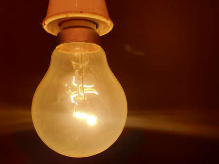 Incandescent light bulb on the bokeh background with copy space
