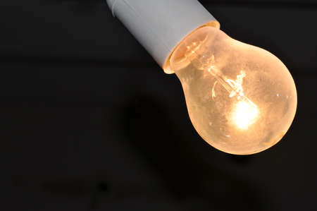 Close-up shot of an incandescent lamp glows in the dark room.