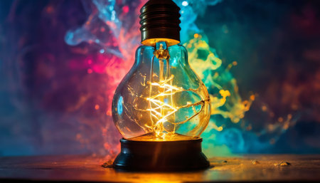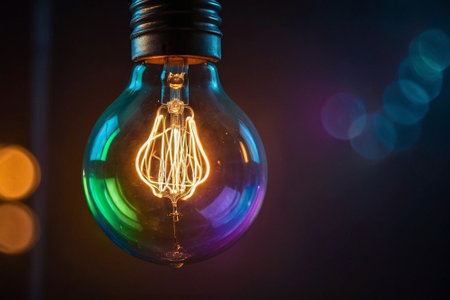 A glowing light bulb with colorful bokeh lights in the background, representing creativity, innovation, and bright ideas in a visually appealing composition.