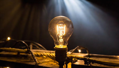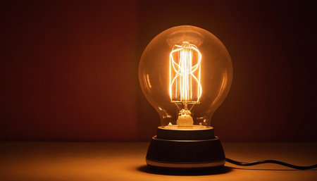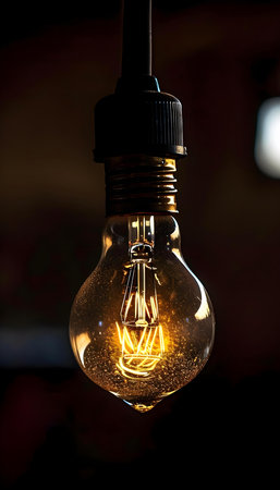 A close-up of a glowing vintage-style lightbulb with warm lighting, creating a cozy and artistic ambiance.