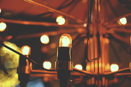 Beautiful retro luxury interior bulb lighting lamp decor glowing in dark. Selective focus