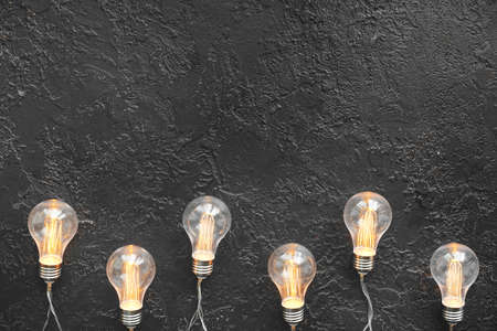 .Group of light bulbs on dark background, concept of idea and innovation.