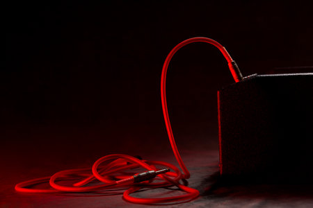 jack cable plugged into amp for concert prep and backstage setup