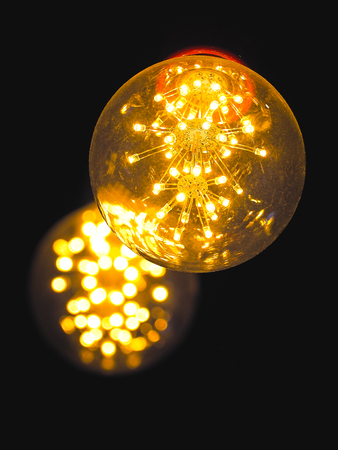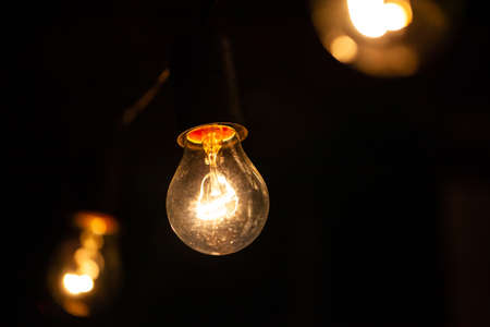 Lighting decor. Retro light bulb filament close up.Illuminated.