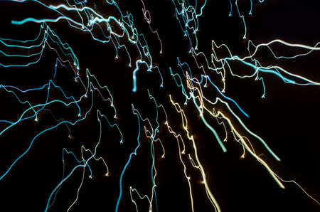 Abstract blurred colorful light effect on a black background. Long exposure photo of moving camera.