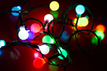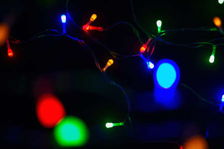 New Year's luminous garlands. New Year. Christmas background. Close-up. Toned. Festive background.
