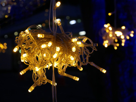 the nigt light bokeh festival with small LED light decor on party night christmas or new year background
