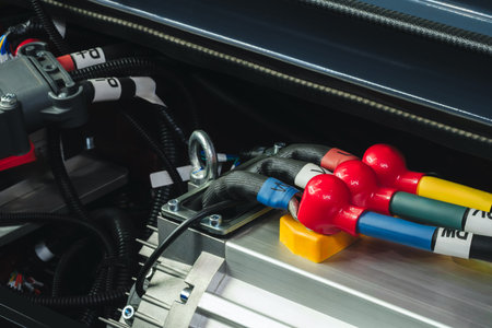 car with powertrain and power connections closeup.