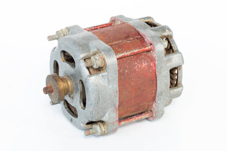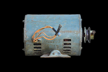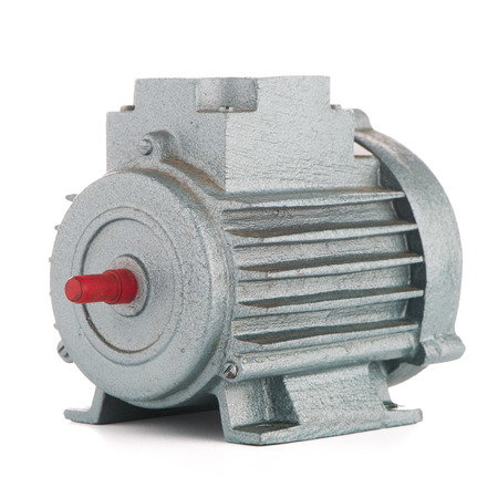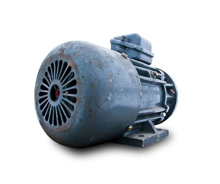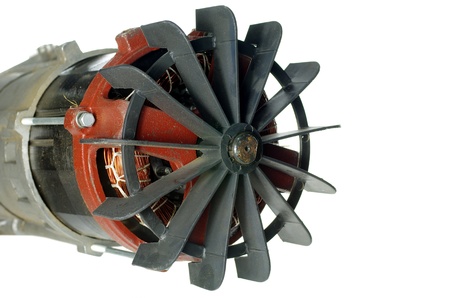Vintage looking Detail of a rotary electric engine motor - isolated over white background
