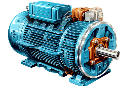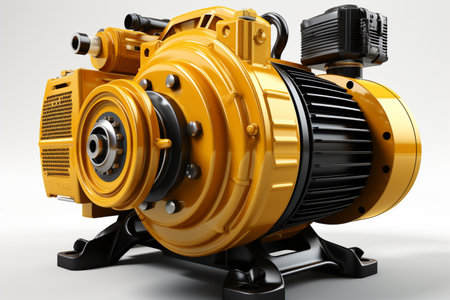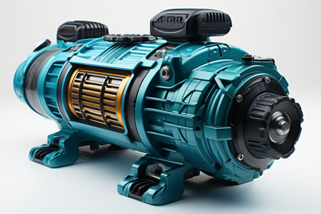 Machinery, pump, device, electrical concept. Detailed close up electric engine machine