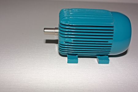 Electric motor from the appliance in the household. Electrical device for driving the washing machine. Light background.