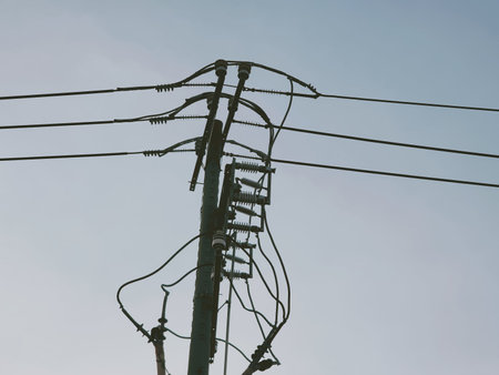 old power line against sky background, retro style photography