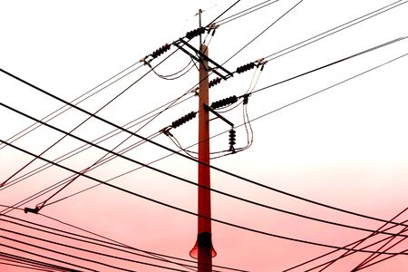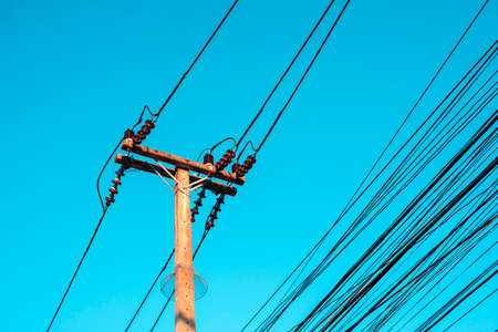 Electrical pole and cables on the clear sky background