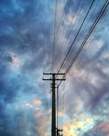 electric poles and bright sky