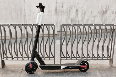 Modern electric scooter outdoors, closeup. rental service