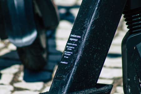Lisbon Portugal july 25, 2020 View of unidentified people rolling with an electric scooter in the streets of Lisbon, operating with a small utility internal combustion engines and a deck in the center