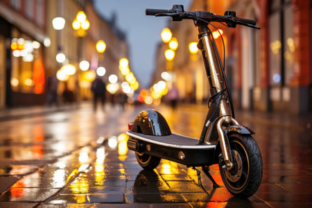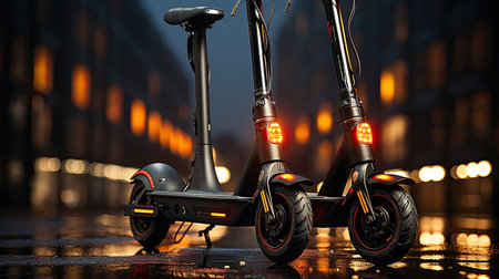 Electric scooter stands in the city. Generative AI