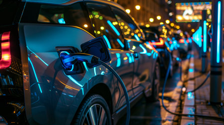 Electric Vehicle Charging on City Street, Sustainable Transportation and Urban Mobility.