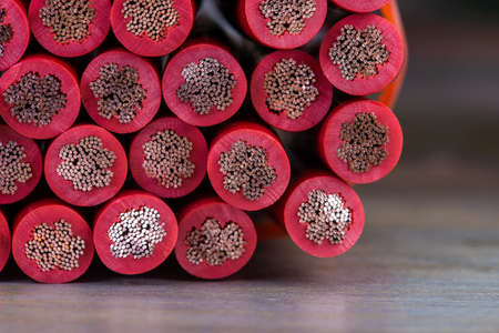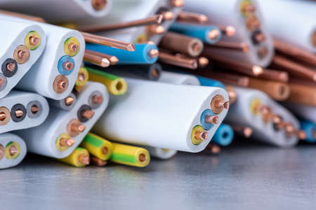Electrical cable cord and copper wire close-up