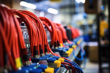 A dense network of cables and wires in an industrial setting, showing the complexity of connections -