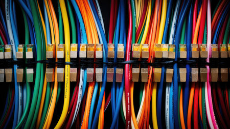 Close-up of colorful network cables in a server setup technology concept