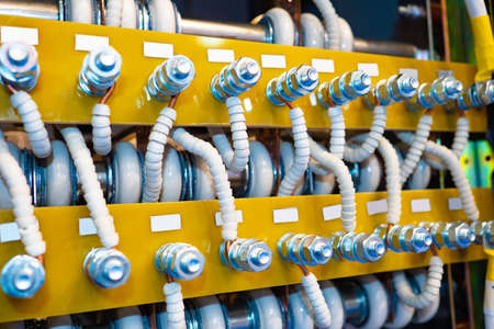 close up of three phase power system in the factory