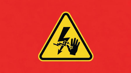 This image depicts a bright yellow caution sign displaying a warning related to electrical hazards, featuring a lightning symbol. The sign highlights important safety messages in an industrial environment, emphasizing the need for precautions around electrical equipment.