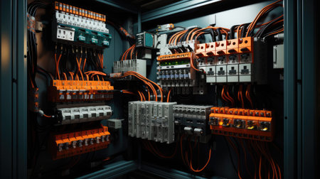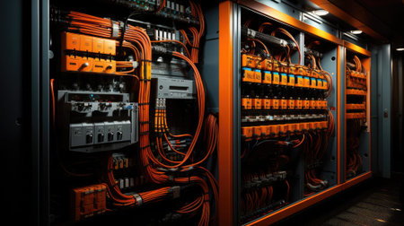 Explore the intricate landscape of an industrial control system with dense wiring and advanced technology, representing the core of modern automation and engineering.