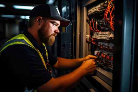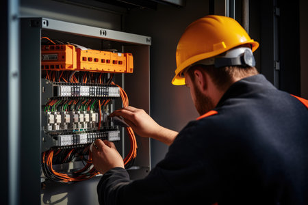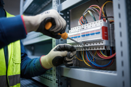 Expert electrician conducting installation and repairs on modern electrical circuit panel