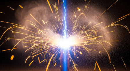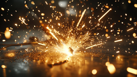Captivating close-up shot of sparks flying during a welding process, showcasing the beauty and intensity of metalwork in an industrial environment.