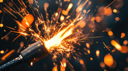 A captivating close-up image showcasing a wire creating sparks and flame, set against a dark background. This dynamic scene highlights energy and electricity.