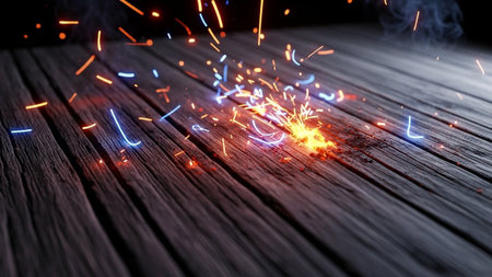 A striking image showcasing bright sparks and glowing particles set against a dark background. Ideal for projects focused on creativity and energy.