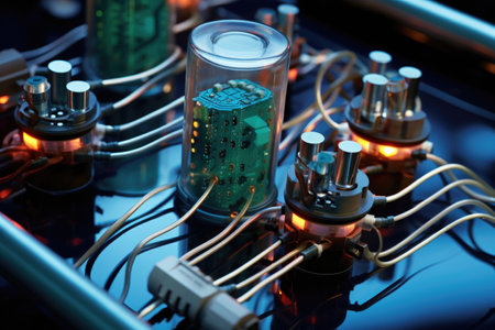 close-up of microbial fuel cell components and electrodes, created with generative ai