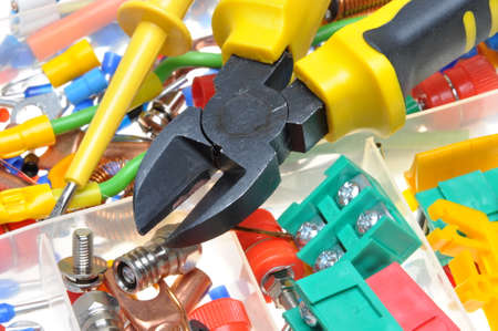 Concept of electrician or electrical tools, close up
